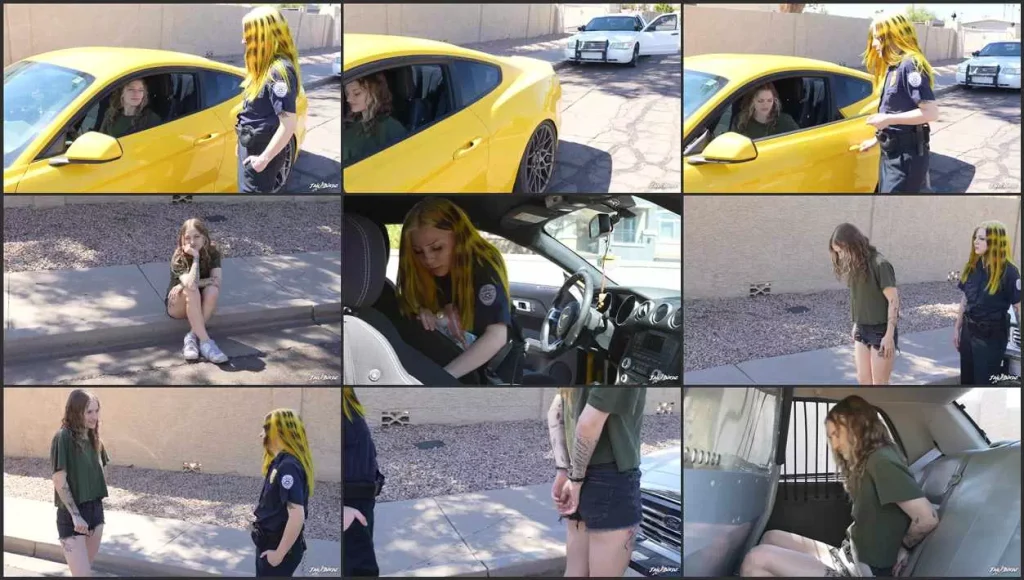 CC is driving around when she was stopped by Officer Persephone. After running her information, she asks to search her car. CC agrees and sits on the curb while Persephone searches. When she finds something she decides to conduct a sobriety test on CC, who ultimately fails it. She is handcuffed and arrested and Officer Persephone puts her in the back of her car to take her to jail.