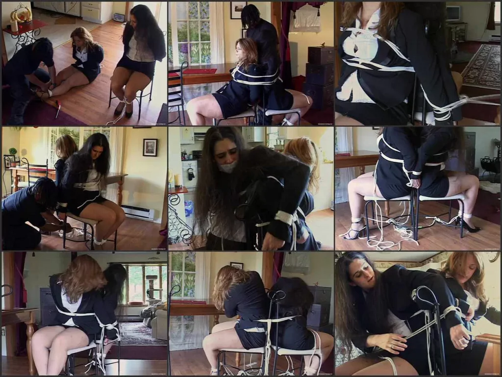 Ten and Diamond have just arrived home after a long day at the office when a burglar breaks in. He ties them both up, securing them to chairs and gagging them with tape. He goes about the business of stealing valuables, only to come back and find that the girls have partially escaped from his bonds. Angry, he re-ties them, tighter than ever to make sure they don’t interfere with his activities. The girls have to struggle long and hard to free themselves of the ropes, by which time the intruder is long gone.