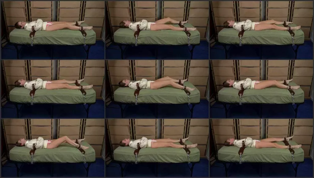 Alyssa Night is trapped in an extra small straitjacket and strapped to the bed with leather hospital restraints. Her frustration builds as she struggles but there is no way out. The redux version is filmed entirely from the side. Pull up a chair and watch your captive try to escape.