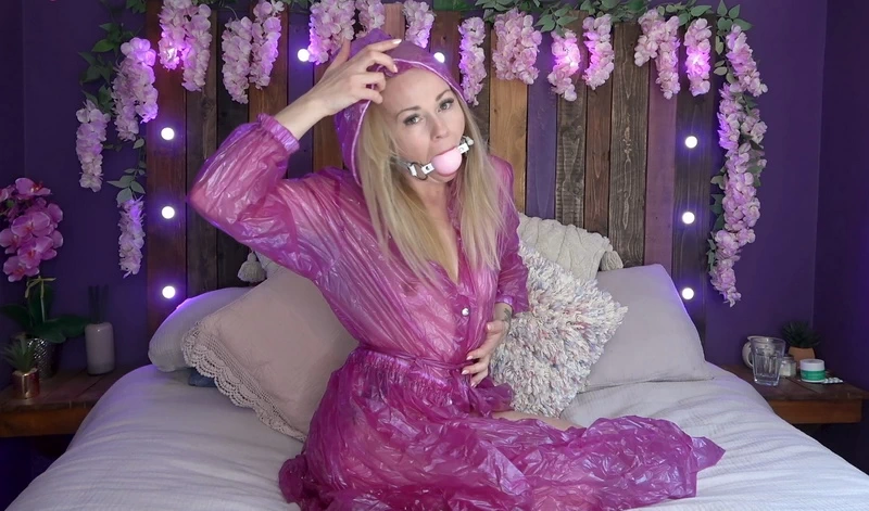 Sarah is hogtied on the floor in Ivan’s basement. Ivan manhandles her into the basement and hogties her on the floor. Sarah is secured in the middle of 4 poles, keeping her from moving in any direction. The big ballgag makes sure she is quiet.