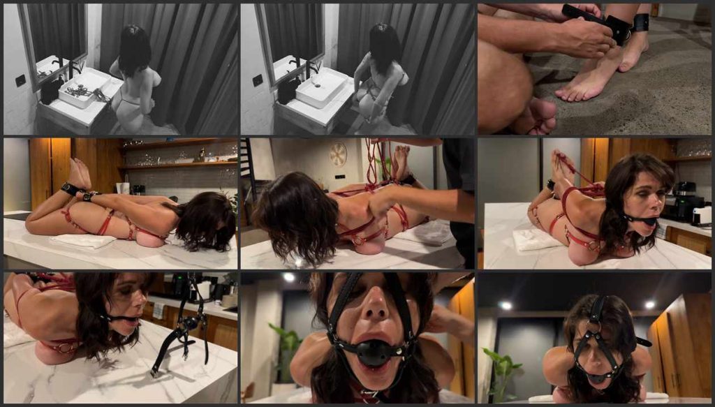 Upon arrival at the designated address, she was greeted by a scene meticulously set for her initiation into the world of BDSM. The table was adorned with an assortment of restraints and ropes, alongside two gags and a selection of provocative attire. With anticipation building, Christy retreated to the bathroom to slip into her chosen ensemble, oblivious to the camera capturing her every move.