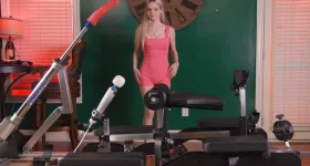 Angel in a light summer dress. A man binds her with black nylon straps and ties her mouth with a black ribbon. Hopping.