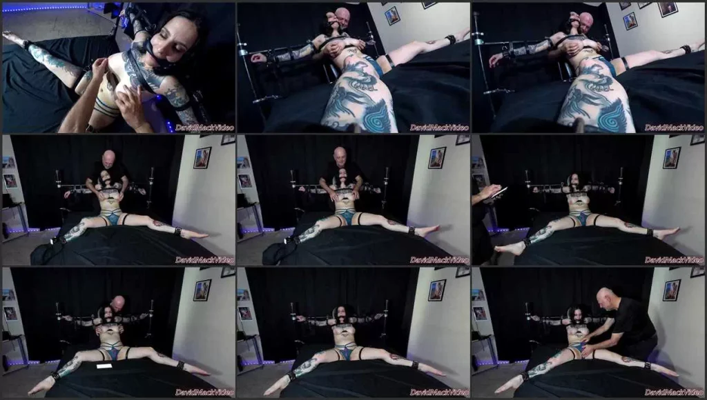 Sexy tattoo brunette pornstar Elle X Raven is bound sitting, legs spread wide, gagged and teased to orgasm just by me playing with her nipples. After a couple leg trembling nipple orgasms, I slip a Bluetooth vibrator under her panties and increase the intensity of orgasms by mixing the vibrations on her clit and more nipple play on now hyper sensitive nipples. After a few more hard orgasms, I turn up the vibrations, step back, and enjoy the show.