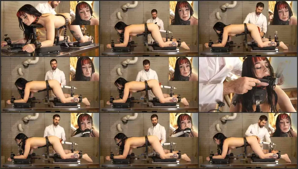 Doctor Vet inseminates Ditria Rose with a knotted dildo with a tube to inject the semen into her. Here we have another successful insemination and knotting that has occurred. After the bitch’s vagina has been filled with sperm, a feeding gag is shoved into her mouth to inseminate her stomach full of sperm, thus completing the double ended bitch insemination.