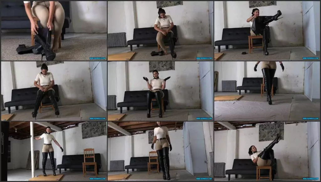 Sexy Calisa Bliss is dressed in incredible equestrian attire! all she needs now is a stunning pair of black leather thigh high boots! watch as calisa puts on her boots and shows them off along with her fantastic figure!