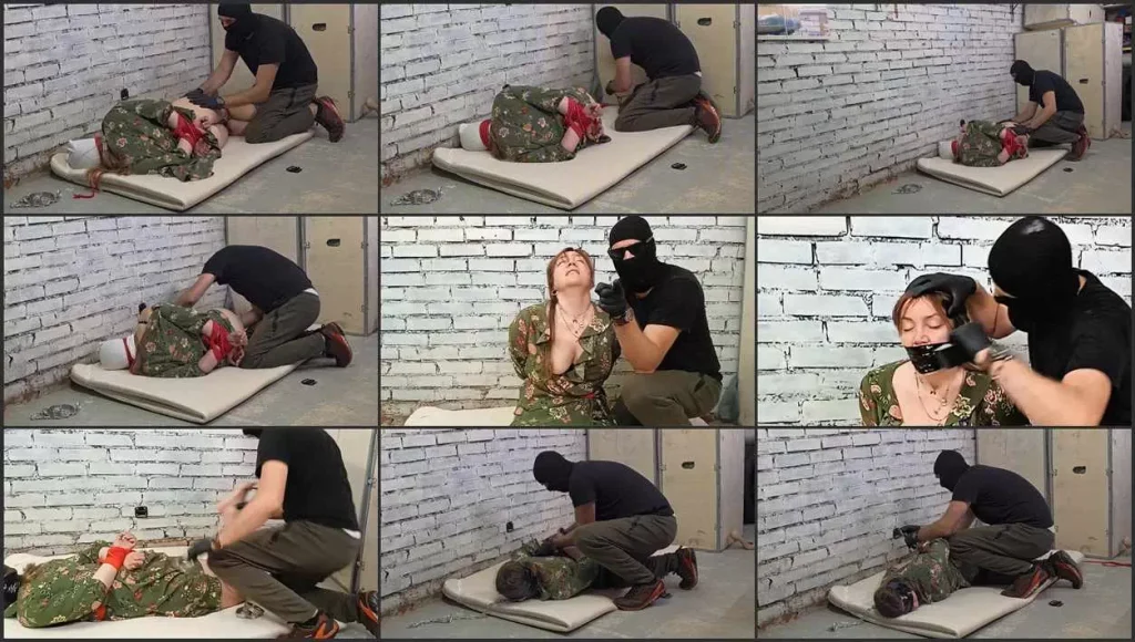 A woman is captured, roped, gagged and dragged to a basement where she is kept tied up while her captors demand ransom from her husband.