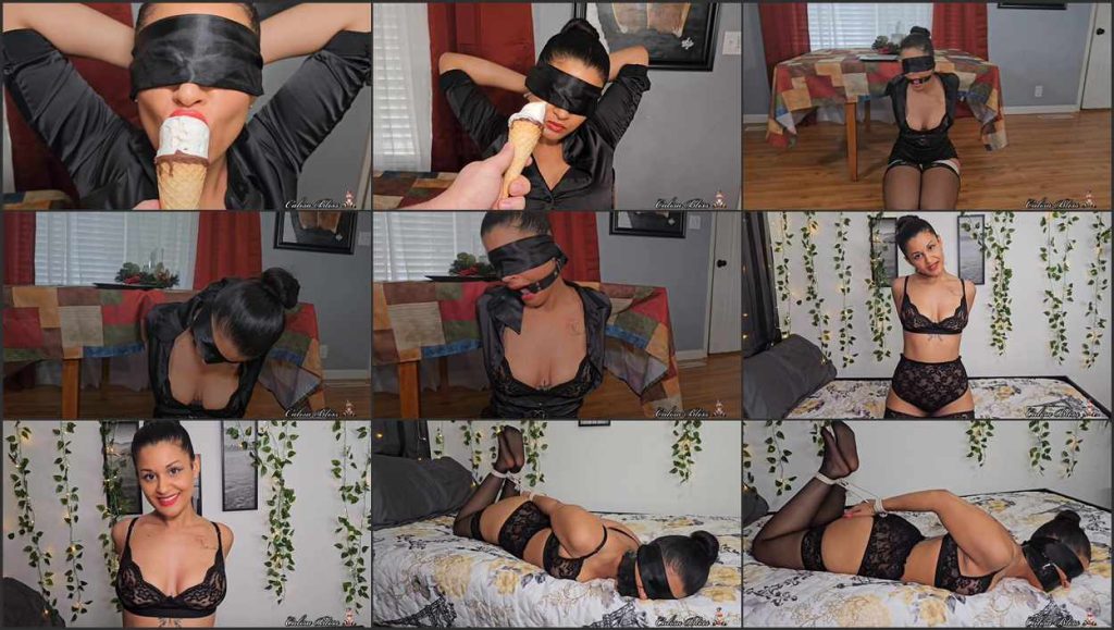 First, you tie my hands above my head and blindfold me while you feed me ice cream. I giggle, moan, and savor every bite like the good girl I am.