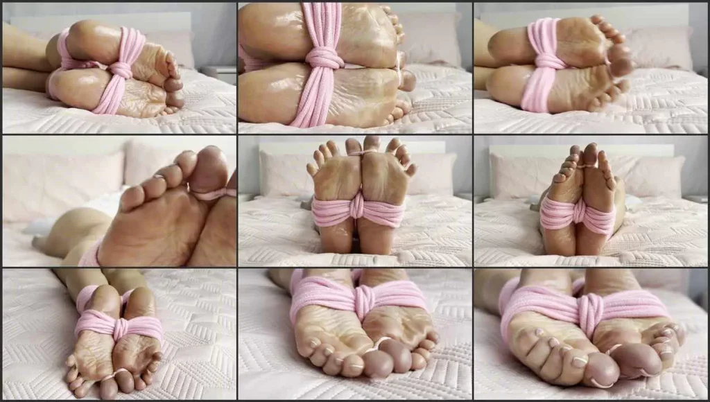 I’m all tied up and restrained in this sexy rope bondage session, my feet tightly bound in pink rope. I’m completely barefoot, and my soles are the center of attention—perfect for any foot fetish lover. Pretty in pink, I squirm and twist, my toes curling with every struggling motion. The bondage holds me firmly, but I can’t help making another escape attempt. Will I break free, or will you just enjoy watching me try?
