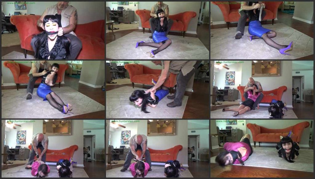 Haughty divorce lawyer Nyxon sits in her lounge chatting with her client Gigi on the phone, she tells Gigi to come to the office and sign the final divorce settlement, they got everything she demanded and more. They laugh knowing that they left her poor shlub of a husband broke and destitute, they destroyed his business and he is now living in a trailer park. Gigi tells Nyxon that she will be there soon and as they finish the phone call Nyxon hears a XXXX on the door. She looks up and sees a big hulking man walk in, she doesn’t recognize him at first then realizes that it is Gigi’s ex, he looks so different now, gone is his expensive business suits and jewlery. He isn’t very happy with the settlement as Nyxon laughs and calls him a loser. He has had enough his ex-wife and this haughty lawyer, he grabs Nyxon and pushes her to the floor. Nyxon struggles but is easily overpowered as he sits on the sofa behind her and locks her arms behind his powerful legs. She demands he stop or she is going to call the cops. But the man has other plans as he pulls an old bandana out of his pocket and XXXX it deep into her mouth. The bandana fills her whole mouth forcing her jaws open, then he pulls out a roll of medical wrap and pulls it between her lips and wraps it tightly aorund her head. Nyxon squirms and struggles betwween his legs as she is brutally gagged but she is helpless to stop him…