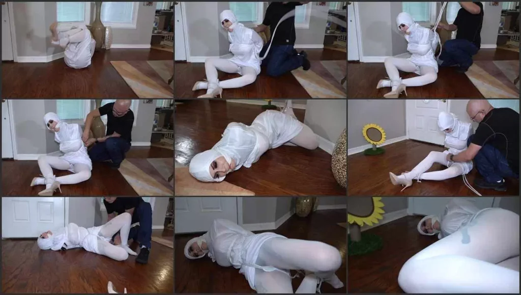 When he broke into the place, he didn’t realize it was a convent until he found and Nun named Nyxon there alone. He quickly tied her up and when he go tired of her, telling him about his sins, he stuffed and tied a gag in her mouth. After leaving this Nun to struggle bound and gagged for a while, he decided to tie her more secure. This is when he noticed her naughty tattoos. It turned out, his captive lived a different kind of life before she chose religion. Not only that being hogtied with a rope tied up between her legs brought that naughtiness back to her. Soon, being tied up like this had Nyxon very turned on. As she started to have her first of many orgasms, she begged for forgiveness. But then again, she couldn’t feel too guilty about it. It is not like she asked for it.