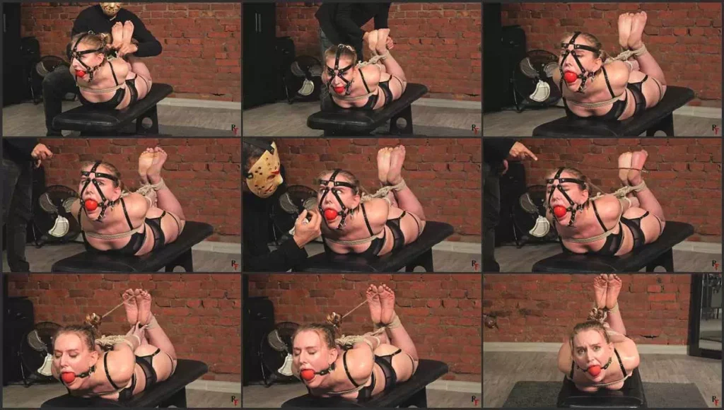 Katrina looks absolutely stunning in her elegant lingerie, but this time beauty meets intensity. She’s tightly hogtied with ropes that hold her body in a perfect, helpless arch. Every minute in this position makes the ropes feel tighter – her breathing deeper.