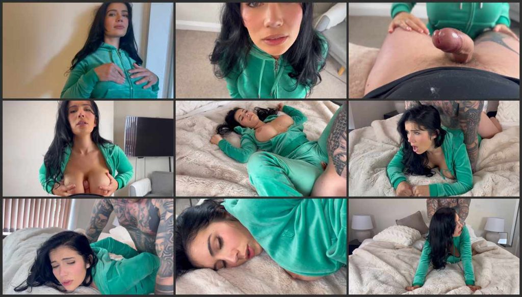 Tatti has treated herself to a new sexy Juicy tracksuit. She wants to spoil her partner when he gets home and she wants him to fuck her good! She has cut a perfect slit in the bottoms so he can get easy access to her tight little pussy so there is no time wasted when he fucks it.