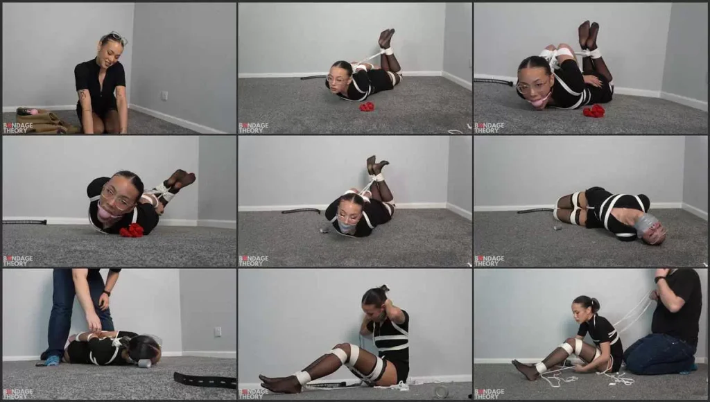 The torment of beautiful secretary Lilly continues in this second part of the video. Now the gag is changed to the tight tape wrap gag and the tormenting escape challenge is still ongoing.