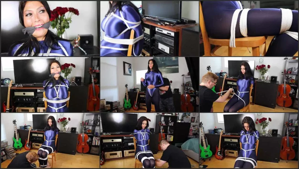 Lola Pearl is a fashion model who has been working in LA for a few years, she loves modelling fashion and art however she feels trapped in a routine that barely amuses her anymore. But one day her friend tells her about a genre of production that immediately catches her attention: bondage! Her friend explains Lola that in these shoots, she would get tied up and gagged and film videos. Lola feels curious about it, the idea of being tied up and gagged thrills her so she asks her friend the contact of the bondage producer. Lola finally books a shoot with the bondage producer. The day of the shoot Lola shows up wearing a shiny Amoresy bodysuit, more than ready to be tied and gagged. The producer ties her hands behind her back tightly, then ties her body, the ropes pressing against her body marking her big boobs, he ties a crotch rope on Lola and ties her legs, finally Lola gets cleave gagged. She feels humiliated but somehow comfortable, she feels a sensation she can’t quite explain but she loves feeling helpless, struggle against the ropes, her voice muffled with the gag. She loves being filmed as she slowly rubs her wrists trying to undo the knots that keeps her tied. She moans in pleasure, she loves being in bondage! Includes behind the scenes.