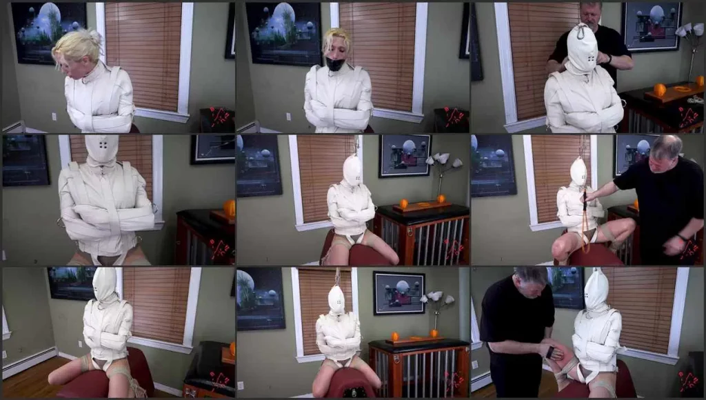 During her visit, Lucy couldn’t help but make a few subtle comments about the collection of hoods and impact toys scattered around the studio. She tried to play it off casually, but her curiosity was clear. So once she was strapped into a straitjacket and had no way out, I decided to give her exactly what she was hinting at. Frogtied and secured to a padded horse, a tight hood keeps her guessing what will come next. With each new toy that landed on her exposed thighs, the skin grew redder and more sensitive. Her muffled moans match each impact through the hood and gag as she squirmed against the straps. Helpless to stop what she had so clearly asked for.