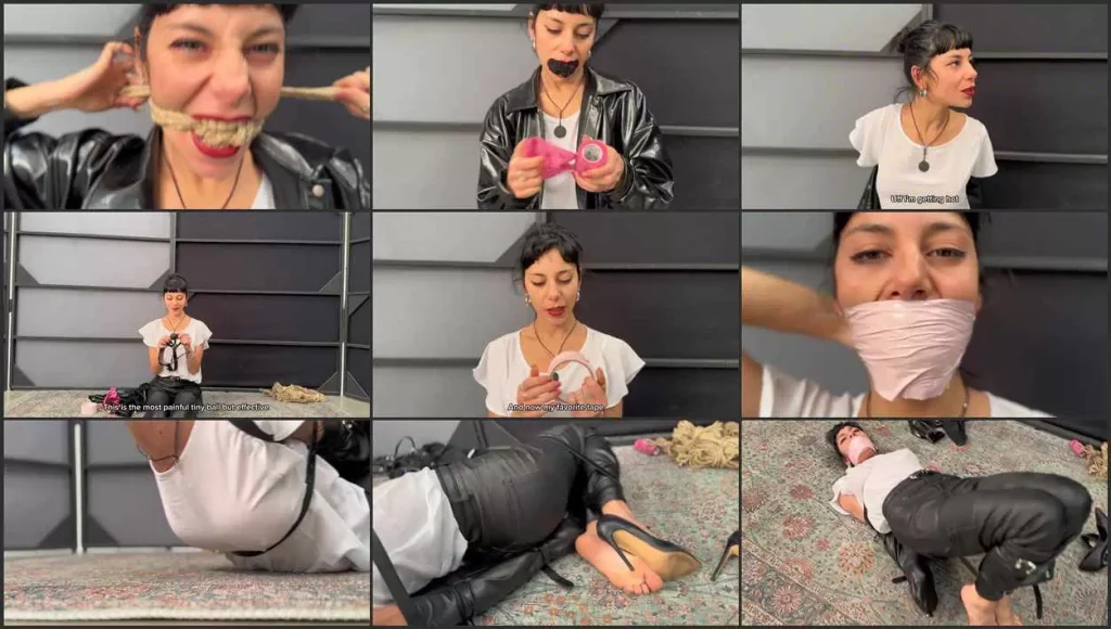 Mayla goes to her shibari class, when she arrives she realizes that she is alone, her teacher has not arrived yet, so she takes advantage of the moment of solitude to give vent to her innate and hidden tendency for submissiveness and to secretly rehearse the various gags she finds in the studio, unfortunately for her her teacher arrives and without Mayla noticing his presence he surprises her from behind and decides to tie her up so that she can experience her hidden submissive tendency well.