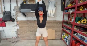 Barefoot Blond Beauty begins the Day with a Self-Bondage Balltie in her Velvet Bathrobe!