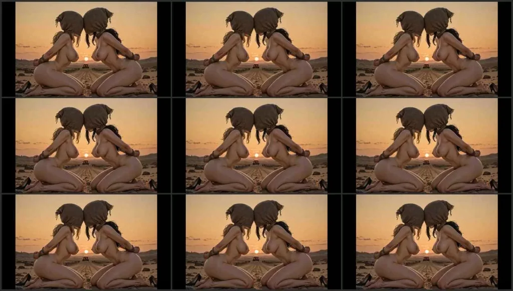 A routine Lyft ride spirals into tight bondage terror for two workout beauties, ending in naked, sacked humiliation under the setting desert sun.