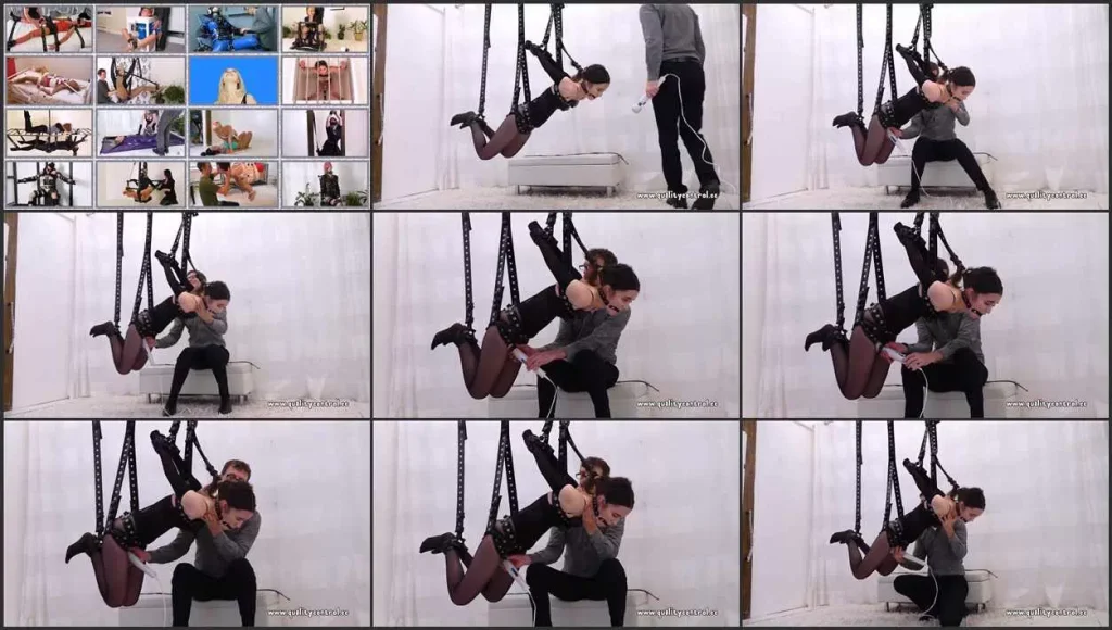 Dangling, desperate to cum, desperate to alleviate her little body swaying in the air with just one orgasm, please.