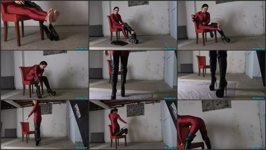 Red Spandex Catsuit and Thigh High Boots! (No Bondage)