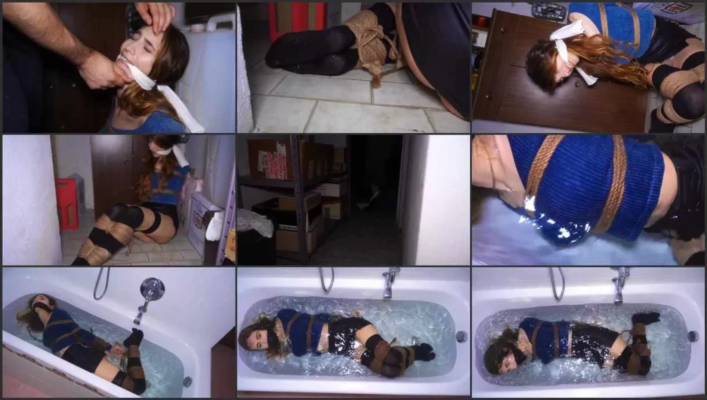 The man ties her tightly, arms at her sides, ties her legs, and gags her with a cleave gag. His plan is to hide her in his basement until he can get the ransom from her wealthy family. Rey is scared; it’s dark and dirty, her clothes are getting dusty as she thrashes and rolls. “MMMMPH…” She moans and struggle, no longer has her shoes on, there’s no way she can escape, but after endless minutes of waiting, the man returns again… He grabs her by the feet and drags her away into the darkness…
