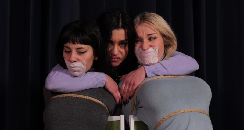 Sarah loves pantyhose, but not as much as I do! In fact, the more the better! That’s why she’s found herself completely encased in pantyhose, from head to toe, her body straining like a packed sausage! She’s got a killer figure, and every single inch and curve is accentuated by her packaging! She rolls and stuggles and cries for help, her pantyhose cleave gag doing little to silence her, but it strains and pulls tightly, digging into her mouth. Still, I’d like to have her a bit more quiet, especially since the bondage is taking a toll and she’s really starting to moan and complain! A few winds of tape, tightly circling her face and mouth again and again, solve the noise problem, but NOT Sarah’s bondage plight! Her boobs are absolutely straining against the pantyhose, and I’m beginning to wish I had chosen a style that was more sheer, so I could enjoy the show, but that’s easily fixed! A few snips of a scissors and those magnificent tits are free as a bird! Too bad nothing else on Sarah is!