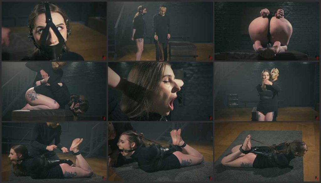 I take Meloxy through a strict training session to mold her into an even more obedient rope bunny and submissive plaything. She finds herself in a dungeon, her wrists and elbows tightly restrained in steel handcuffs. A harness gag with a ball fills her mouth, and a collar encircles her neck as I lead her around the central stand by a leash.