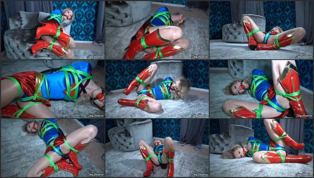 Gorgeous Cecelia Taylor, a stunning beauty, stands in provocative Supergirl cosplay, her lithe figure compressed into a tight leather armbinder. At first glance, it seems an effortless feat for the über-powered heroine to escape. However, a closer inspection reveals her predicament to be far more perilous…