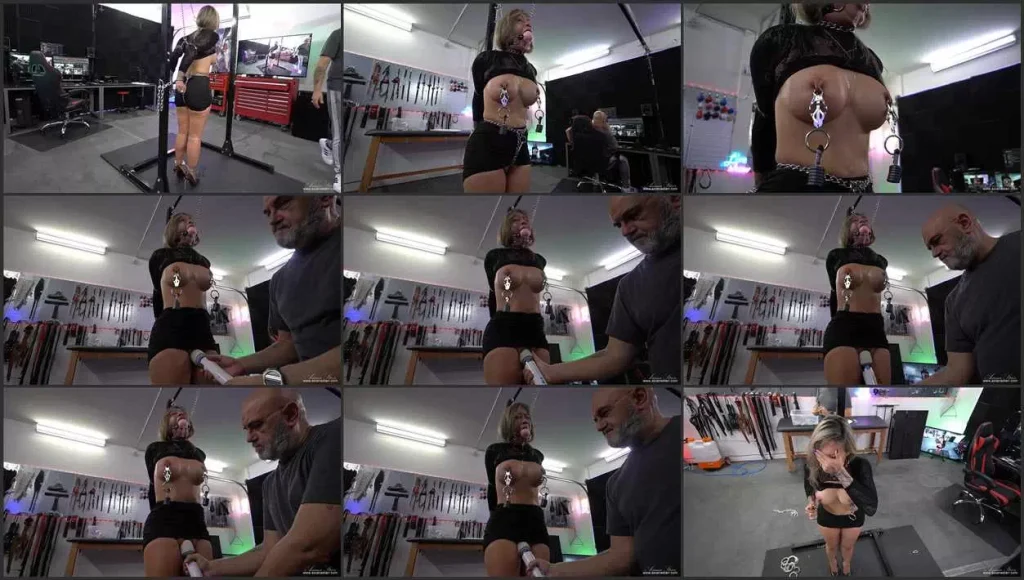 I’m just trying to survive the clovers and Martin keeps distracting me with his cock behind the camera. He knows how much that breaks my focus – reminding me of what I’ll be rewarded with in the bedroom after I’m rewarded in the Playroom. He removes the crotch chain and while he’s working me with the wand, I cum, fantasizing about having him in my mouth later.
