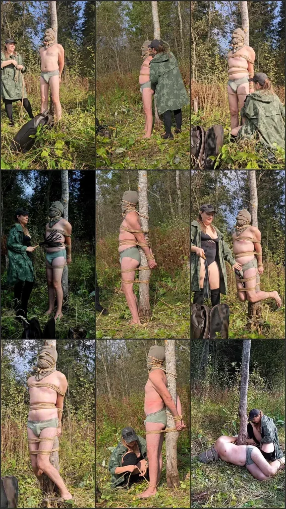 A cruel and beautiful Mistress demonstrates her boundless power over her submissive slave. She takes him to a remote, deserted forest, where no one will hear his moans or come to his aid.