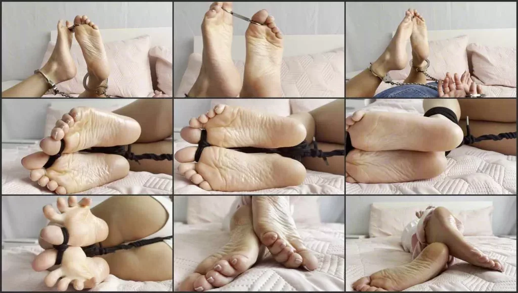 This is a complete bondage experience—from rope to duct tape to cold metal cuffs—made for fans of helplessness, female desperation, and a serious foot fetish focus.