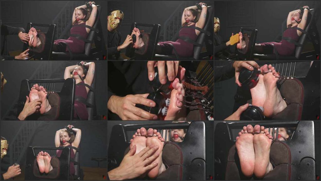 In this clip, I once again indulge in tickling Arina’s bare soles while she’s restrained on the bench. Her body is strapped down with belts, and her mouth is stuffed with a big red ballgag, muffling her desperate squeals.
