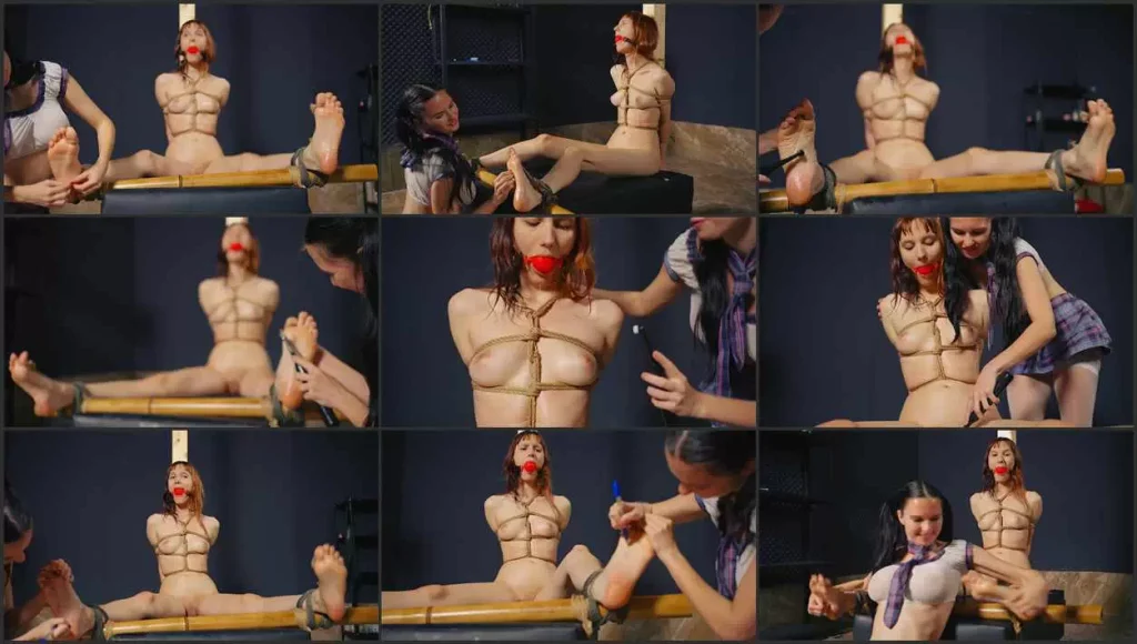 Tightly bound and completely naked, Cadence won’t be able to hide her barefoot soles from the tickling! We already know how ticklish Cadence is! She squeals and squirms, but the tight ropes won’t let her escape! This time, too, there will be no mercy for her feet, so in addition to the tight bondage, we also put on her a large red ball gag.