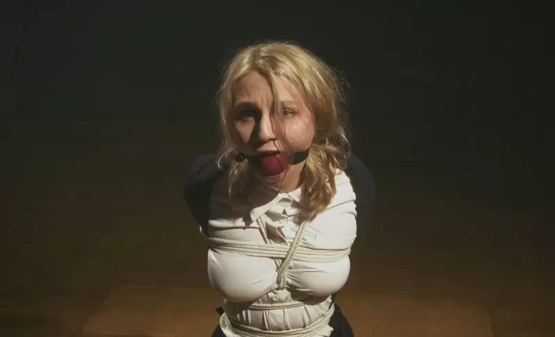 Tied damsel with nipple clamps