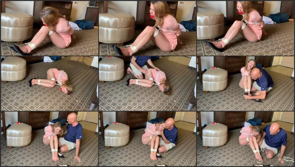 Have you ever found yourself longing to catch a sneak peek of our complete video without diving into the entire feature? Your search ends here with our “Talettes” collection, offering exclusive snippets from our videos. In this tantalizing talette, Kody Evans is ensnared in a meticulously tight bondage setup, her every futile attempt to break free adding a layer of suspense. Her shoes are gently slipped off, exposing her bare feet to playful tickling that elicits uncontrollable laughter. Ultimately, she is guided to hop awkwardly, yet charmingly, onto the bed, adding a whimsical touch to her predicament.